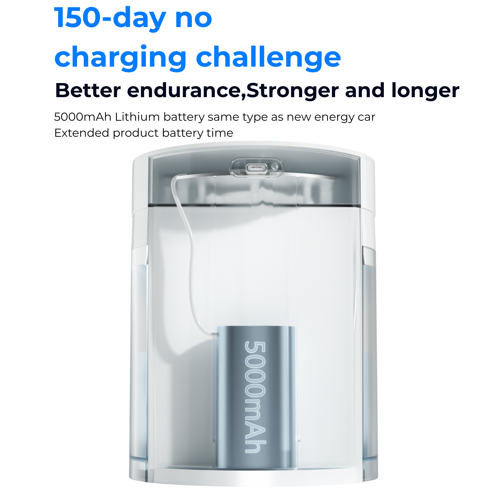 Ausgestattet mit einem 5000-mAh-Lithium-Akku, hält bis zu 150 Tage mit einer einzigen Ladung.
