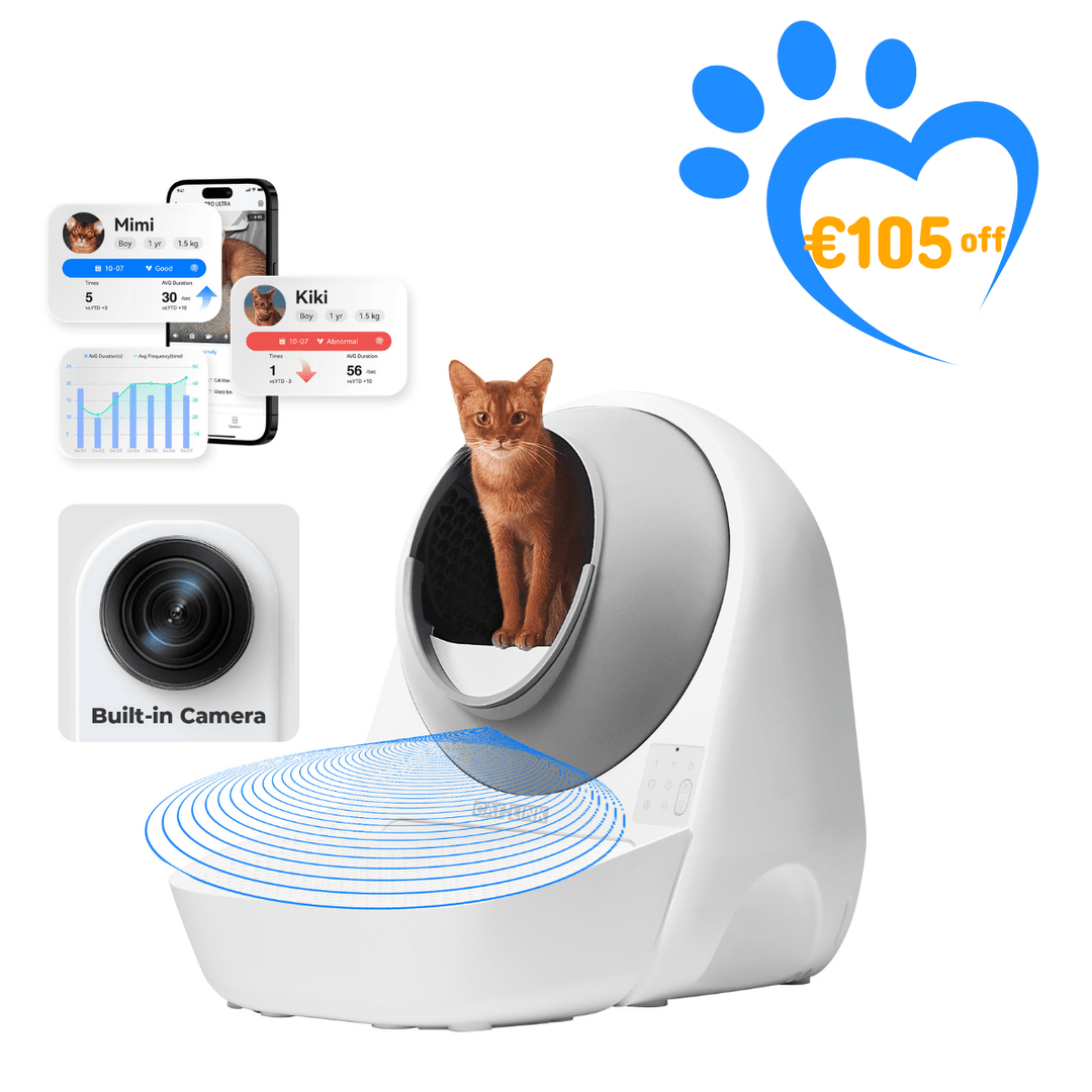 AI learns each cat’s weight and habits, tracking frequency/duration of bathroom visits. Receive alerts for unusual patterns (e.g., UTI risks) via app – like a vet assistant at home!
