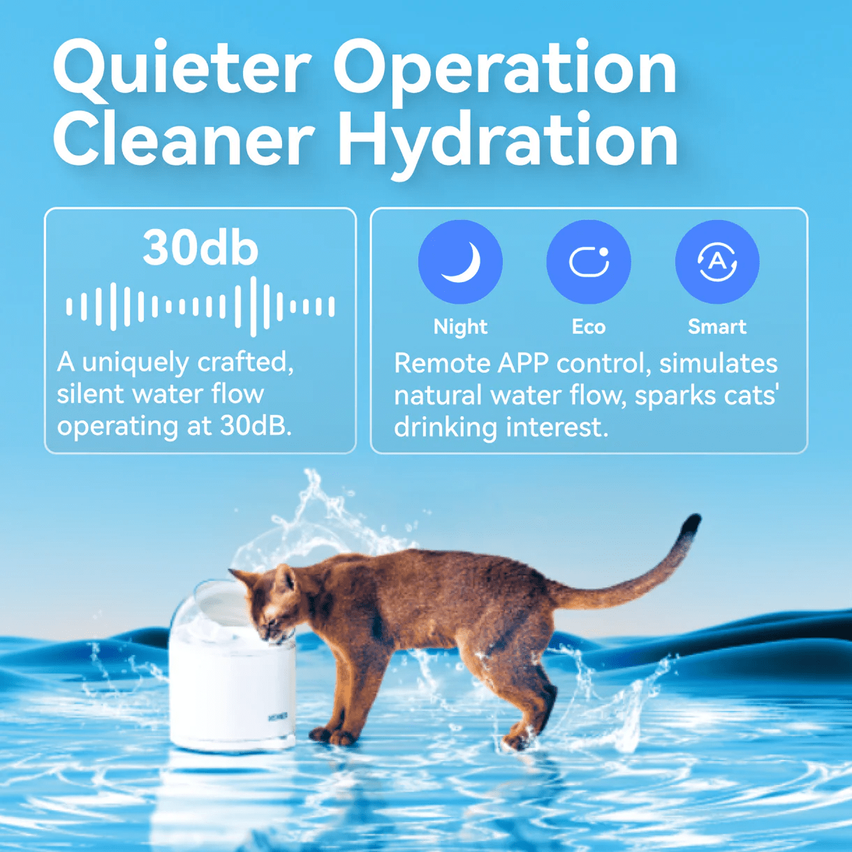 A human-grade filter keeps every drop clean and pure, ensuring your cat drinks only the best. The water-electric separation design eliminates microcurrents, giving your cat a truly safe drinking experience.
