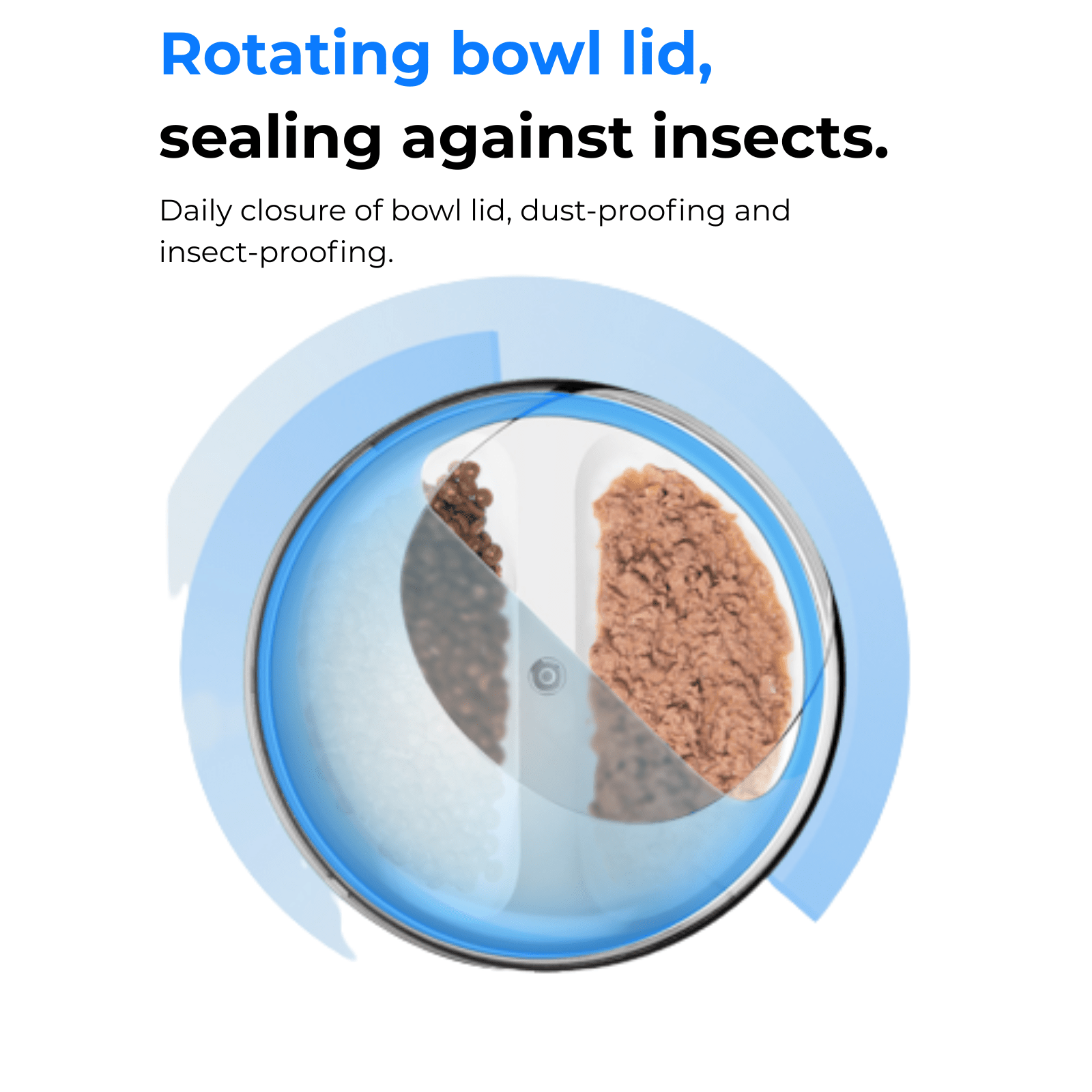 • Proaspăt și igienic cu capac rotativ:Capacul etanș rotativ păstrează hrana proaspătă și ferită de insecte – asigurând că pisica ta se bucură întotdeauna de mese curate și gustoase.